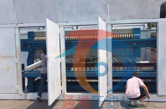 操作方法打開壓濾機控制開關,啟動壓濾機,將壓濾機板框自動壓緊,使壓力表指針顯示在“15-20”Mpa范圍內,此時電機應停止工作,處保壓狀態。