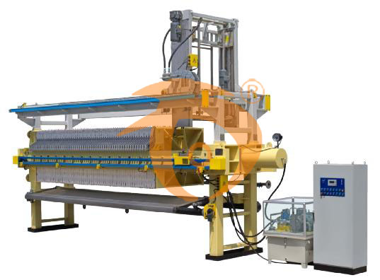 功能包括:自動(dòng)壓緊和松開、自動(dòng)高壓卸荷、自動(dòng)保壓、自動(dòng)補(bǔ)壓、自動(dòng)進(jìn)料、自動(dòng)壓榨和卸壓、自動(dòng)吹氣、自動(dòng)卸餅、自動(dòng)拉板、自動(dòng)取板、暫停、翻板和泥斗自動(dòng)打開和關(guān)閉等全過程控制,可程序自動(dòng)控制也可手動(dòng)操作。根據(jù)用戶要求還可加裝光幕保護(hù)程序。